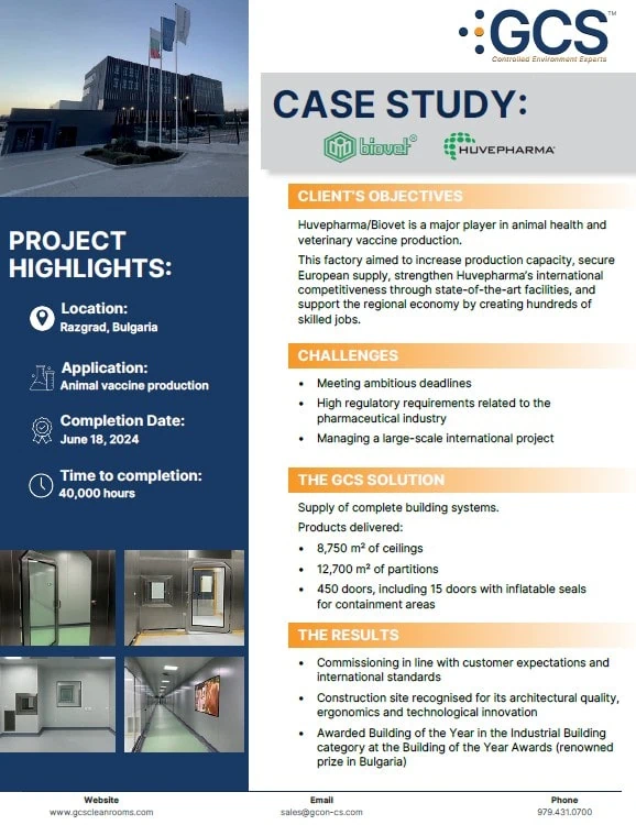 GCS supported the delivery of a state-of-the-art animal vaccine production facility for Huvepharma / Biovet, a global leader in animal health and veterinary vaccines.