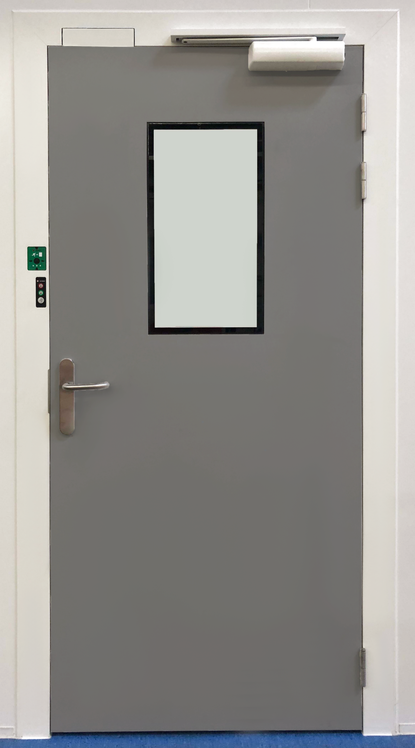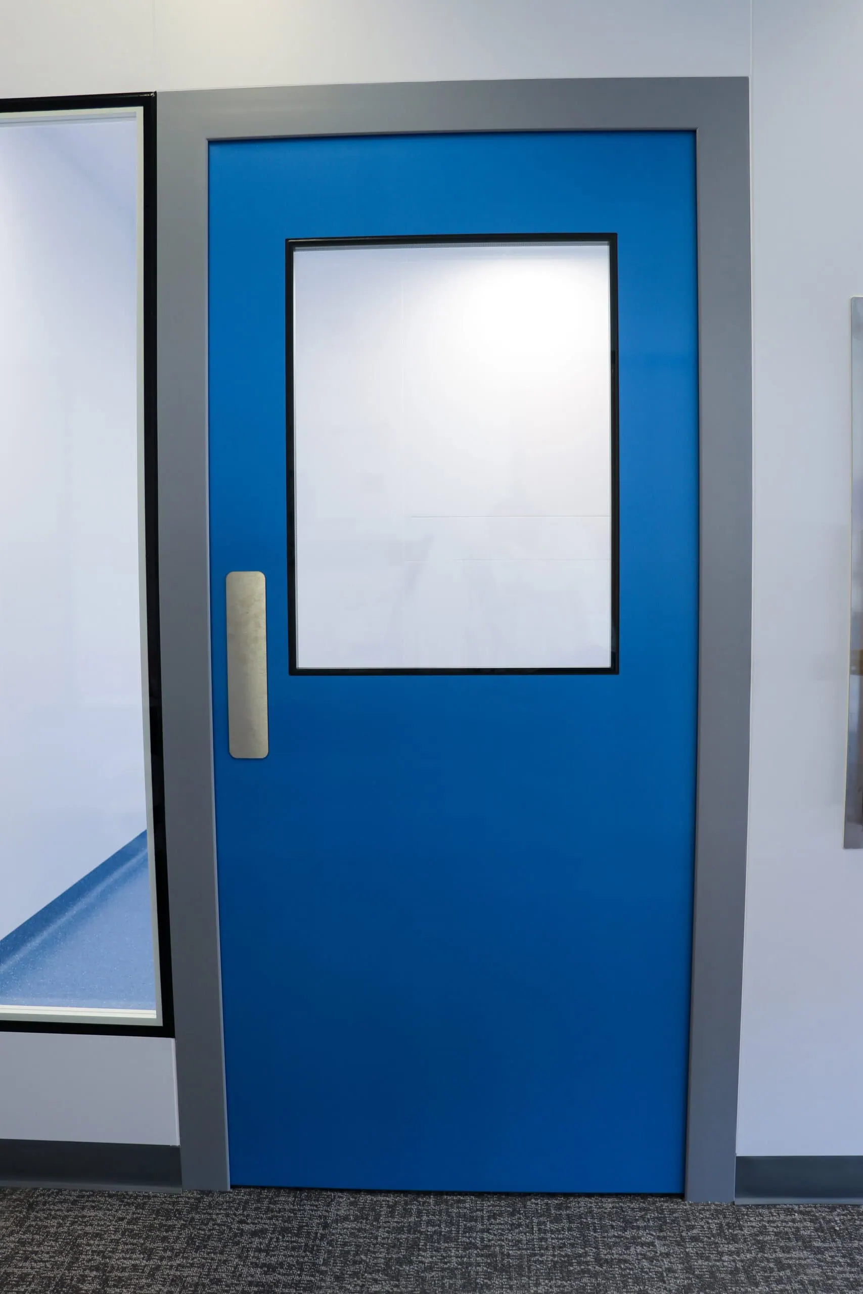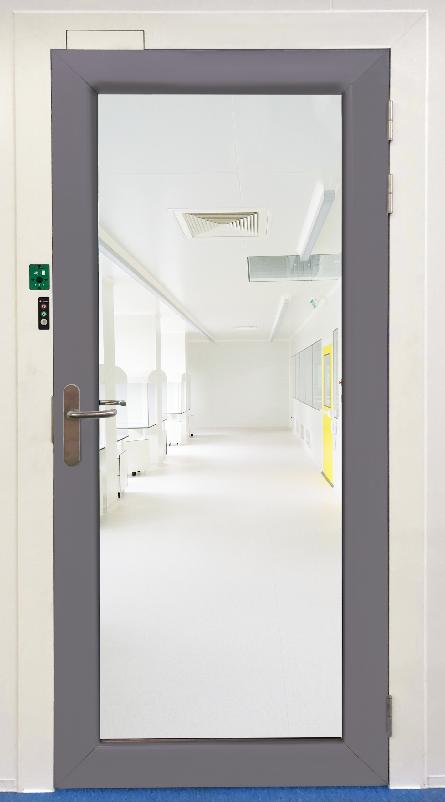 Optimally sealed double-flush door for regulated environments. Suitable for Biosafety Labs (BSL) and Vaporized Hydrogen Peroxide (VHP) Airlocks.